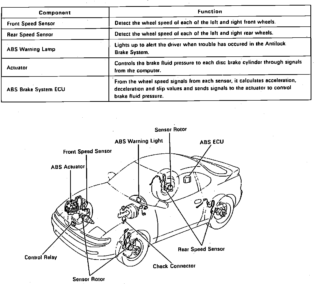 Fig. 3 Component Location & Function. 1990-91 Celica w/2WD: