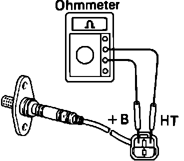 OXYGEN SENSOR HEATER RESISTANCE (EXCEPT CA. MODELS)Using an Ohmmeter, measure the resistance between terminal +B and HT.