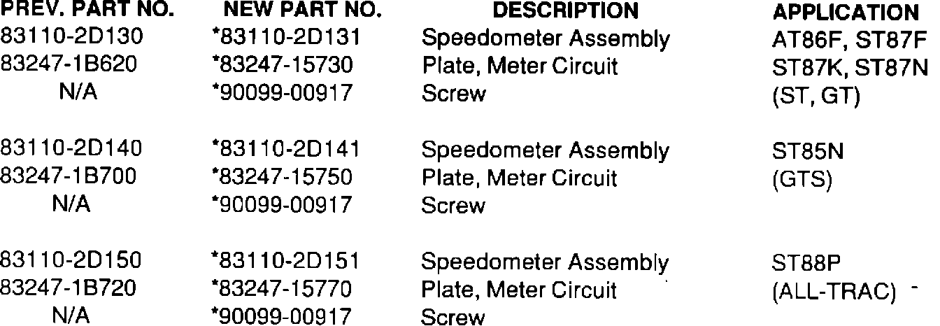 * Speedometer replacement on vehicles produced prior to the 7/91 production change requires a new Meter Circuit Plate and 1 additional screw.