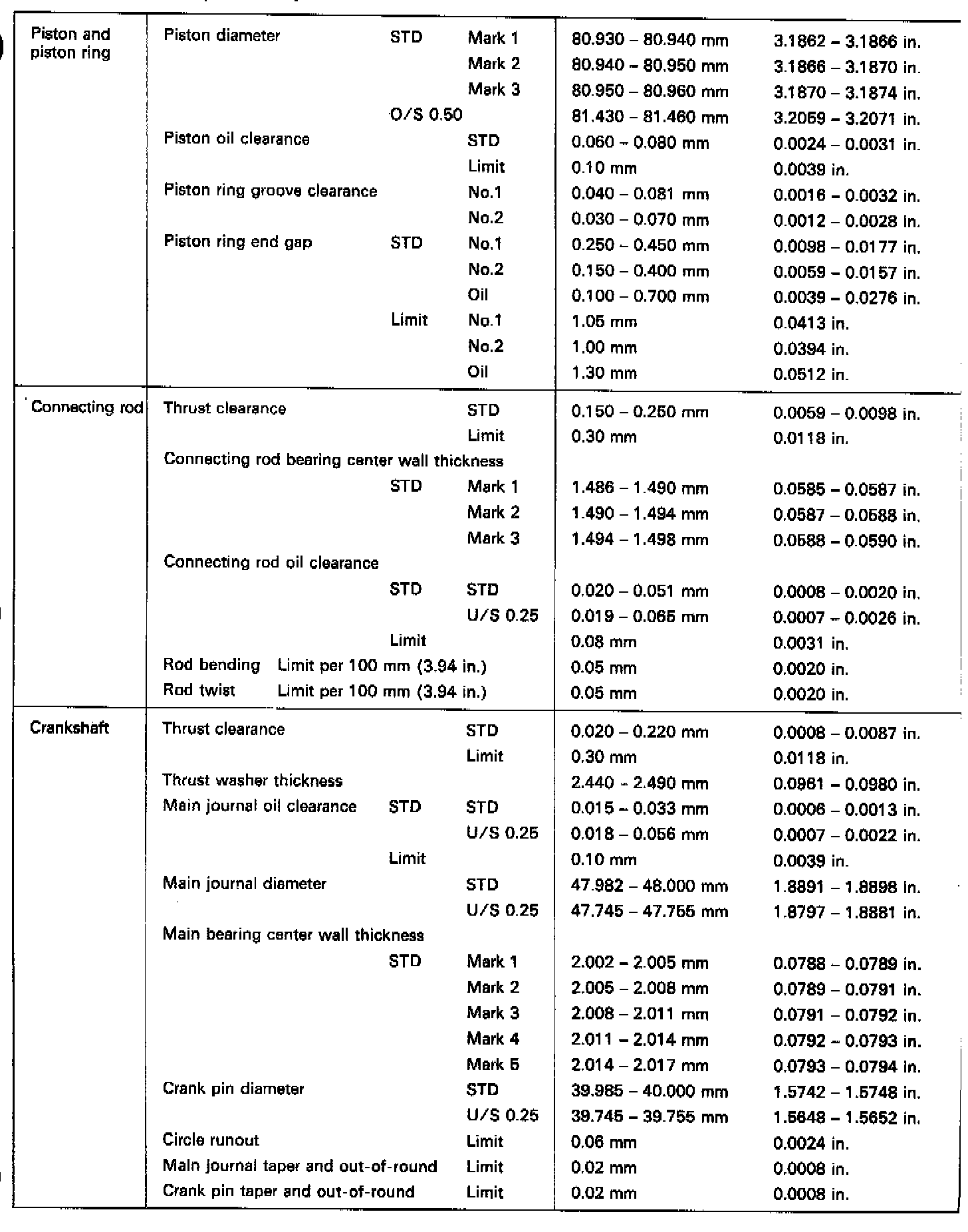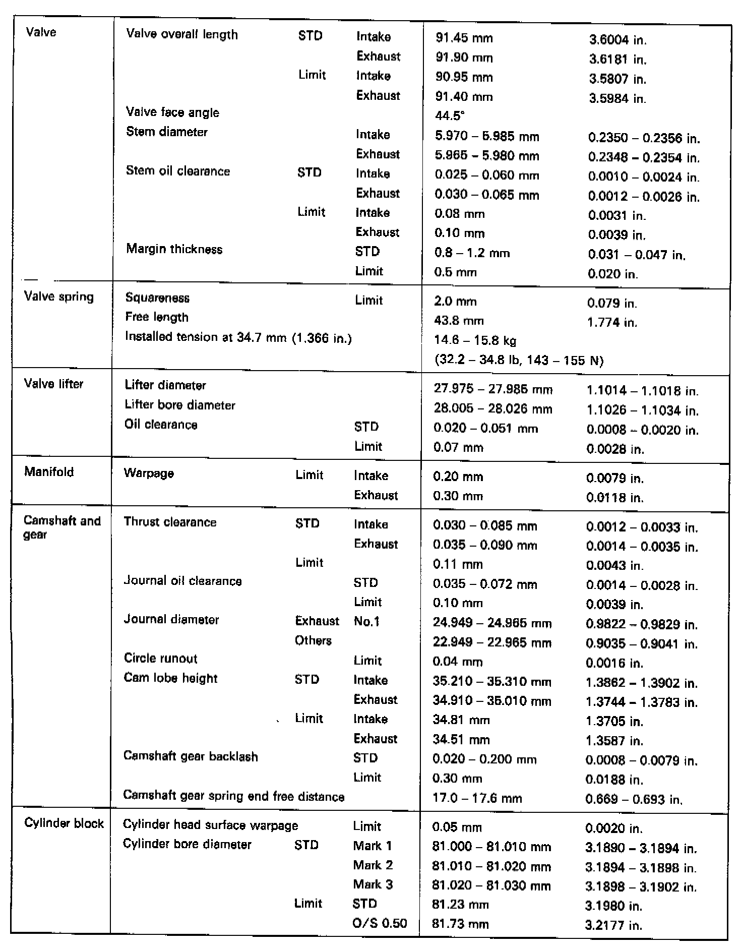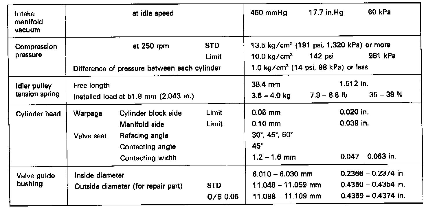 4A-FE Mechanical Specifications (3 Of 3):