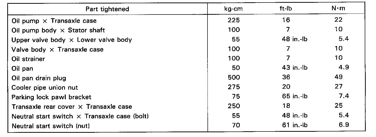 Torque Specifications: