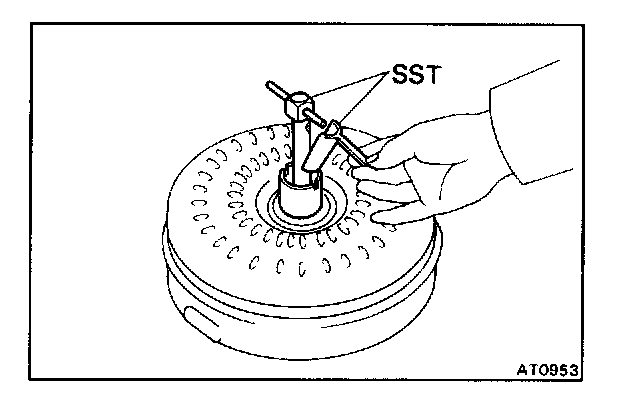b. Install SST so that it fits in the notch of the converter hub and outer race of the one-way clutch.