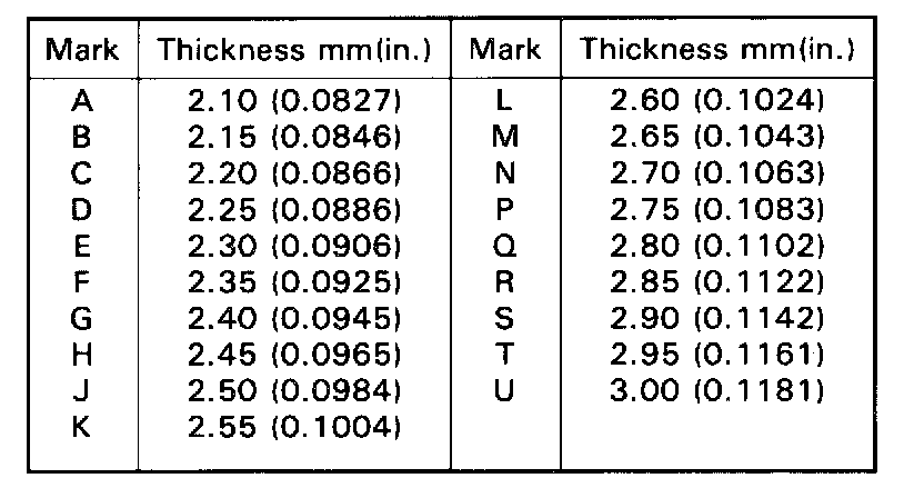 Standard clearance: 0.10 - 0.45 mm (0.0039 - 0.0177 in.)
