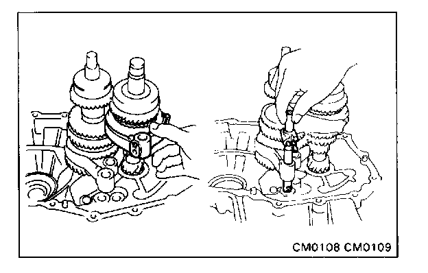 b. Insert No.1 fork shaft into No.1 shift fork hole.