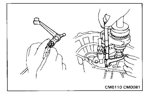 a. Put the reverse shift fork pivot into the reverse shift arm and install the reverse shift arm to the transaxle case.