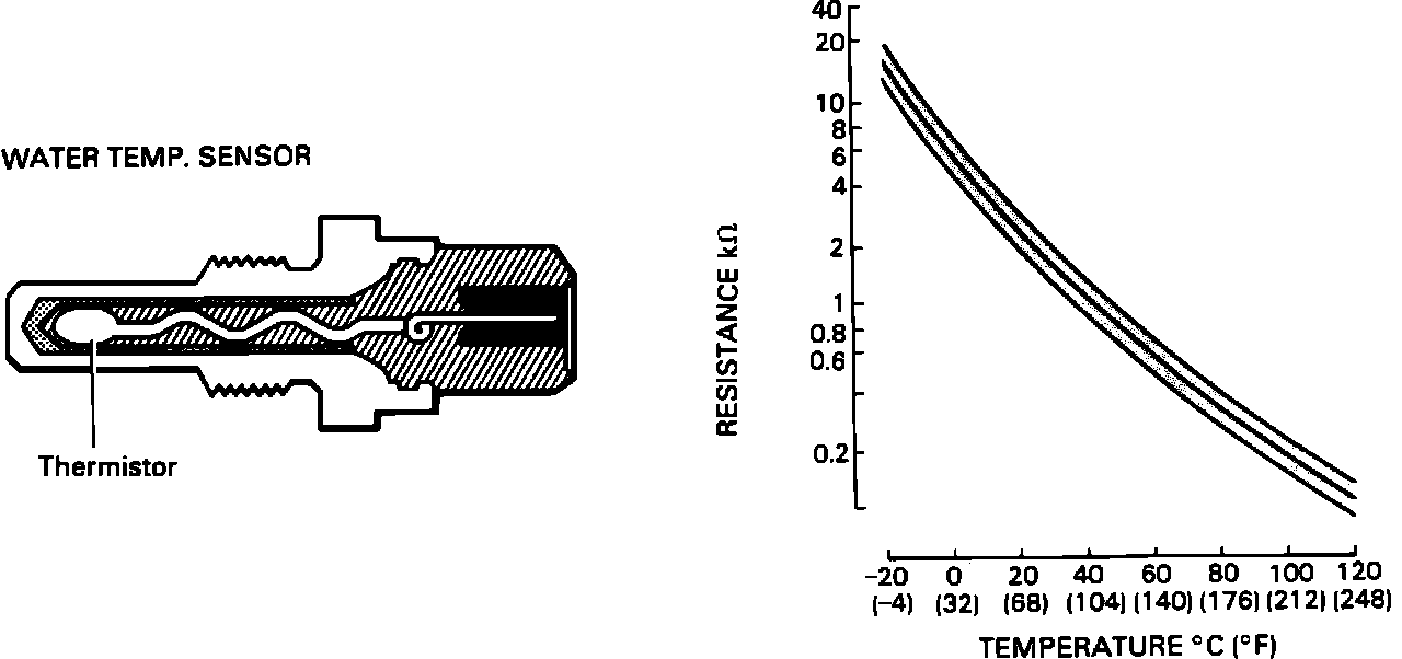 1. Disconnect the connector from the Water Temperature Sensor.2. Using an Ohmmeter, measure the resistance between the terminals.