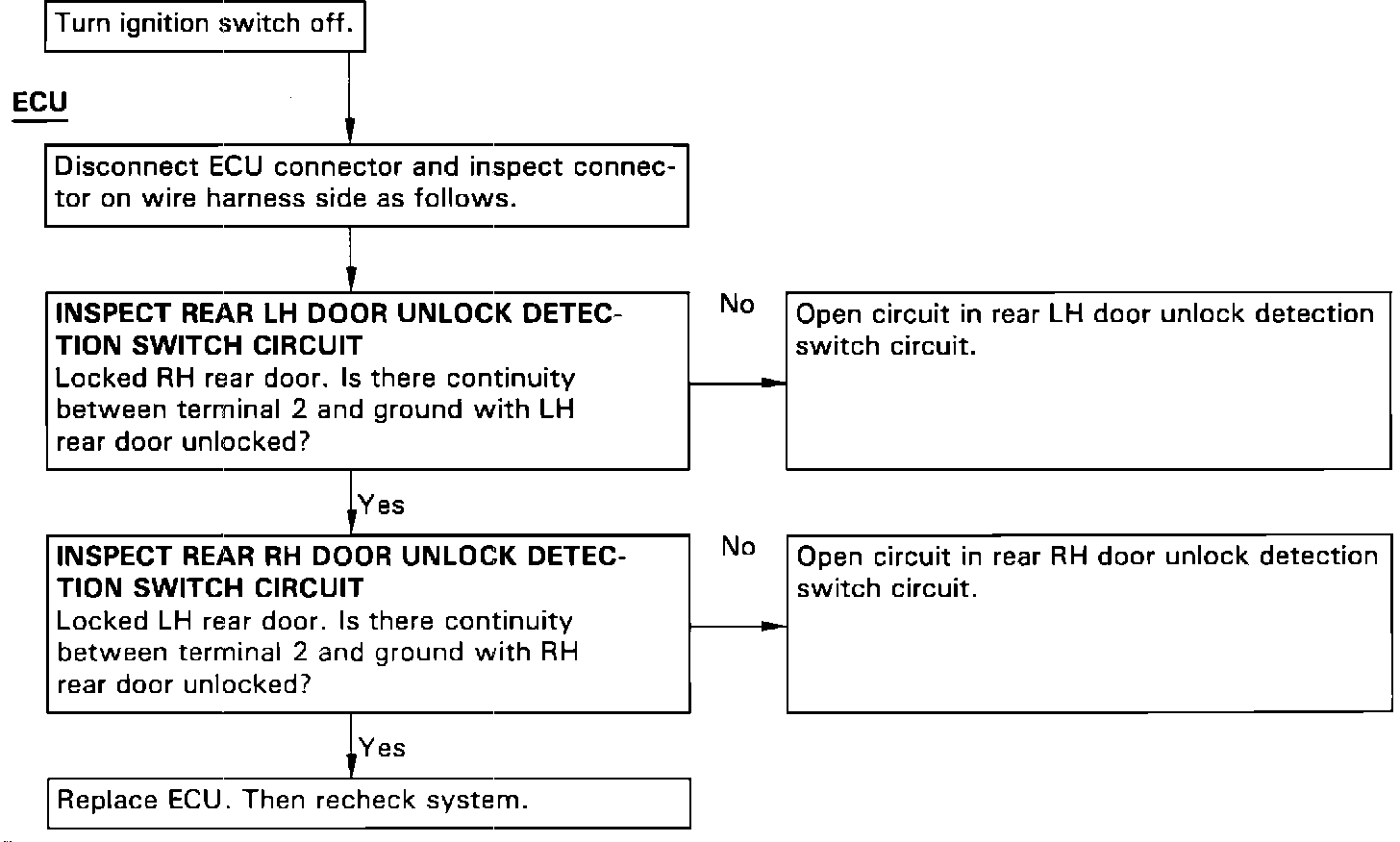 Rear Door Unlock Detection Switch Circuit Inspection: