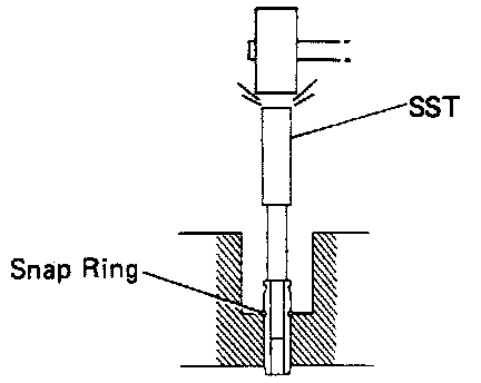 (g) Using SST and hammer, tap in a new valve guide bushing until the snap ring makes contact with the cylinder head. SST 09201-70010