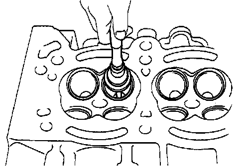 Apply a thin coat of prussian blue (or white lead) to the valve face. Install the valve. Lightly press the valve against the seat. Do not rotate the valve.