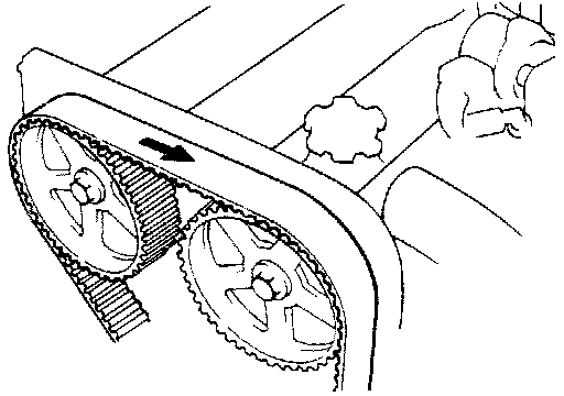 HINT: If reusing the timing belt, install it with the rotation direction mark pointing in the same direction as before disassembly.