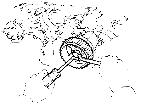 NOTICE: Do not make use of the timing belt tension when removing and installing the pulley set bolts.