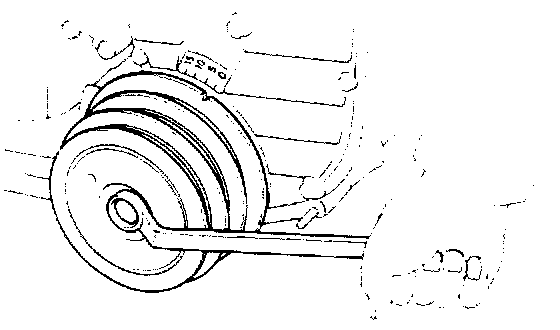 14. Install water pump pulley, fan with fluid coupling and alternator drive belt