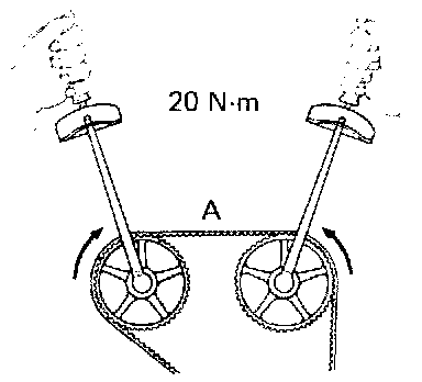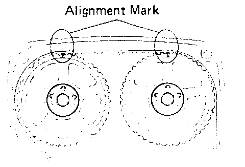 HINT: Check that the timing belt tension at A is equal to that at B. If not, readjust with the idler pulley.