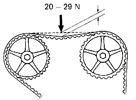 Belt deflection at 20 - 29 N-m (2 - 3 kg-cm, 4.4 - 6.6 ft-lb)