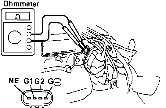 7. Using an ohmmeter, measure resistance between ignition coil (+) and (-) terminals.