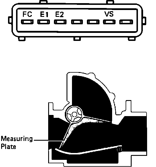 1. Disconnect Air Flow Meter connector.2. Using an Ohmmeter, measure the resistance between each terminal. (Refer to chart)