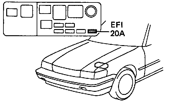 After repair of the trouble area, the diagnostic code retained in memory by the Engine & ECT ECU must be canceled by removing the EFI fuse (20A) for 10 seconds or more, depending on ambient temperature (the lower the temperature, the longer the fuse must be left out) with the ignition switch OFF.