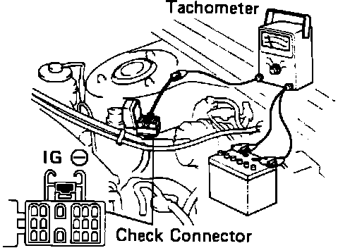 2. Connect a tachometer test probe to terminal IG of the check connector, Fig. 30