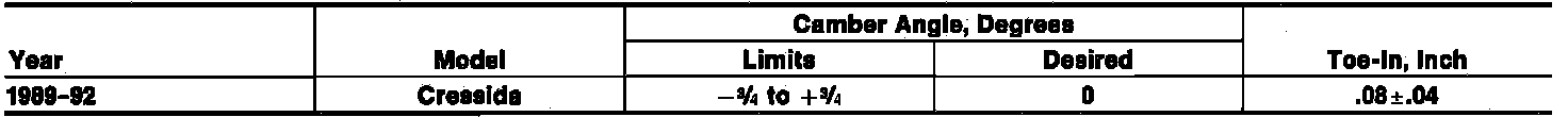 Front Wheel Alignment Specifications: