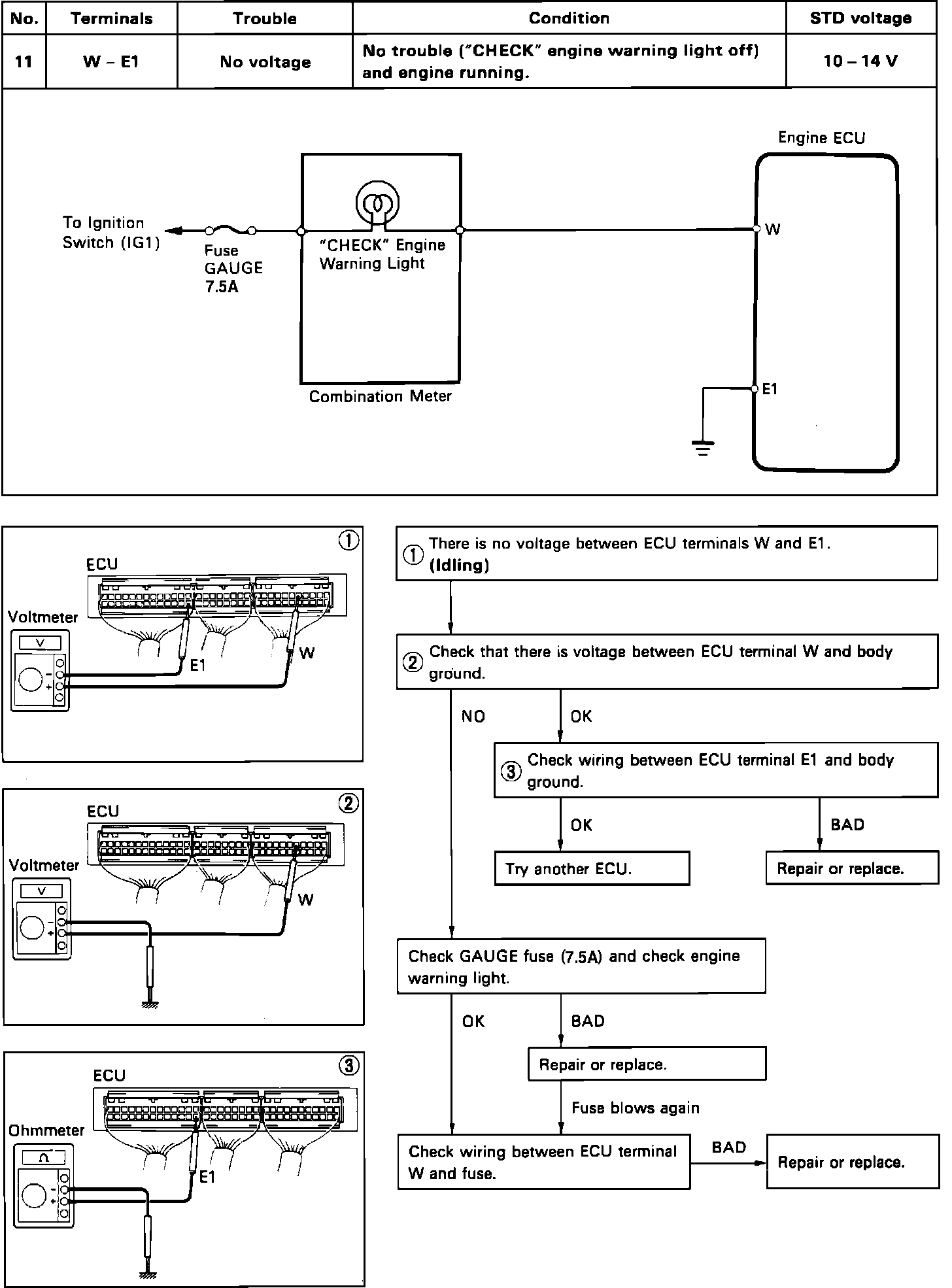 "CHECK ENGINE" Light Circuit Test: