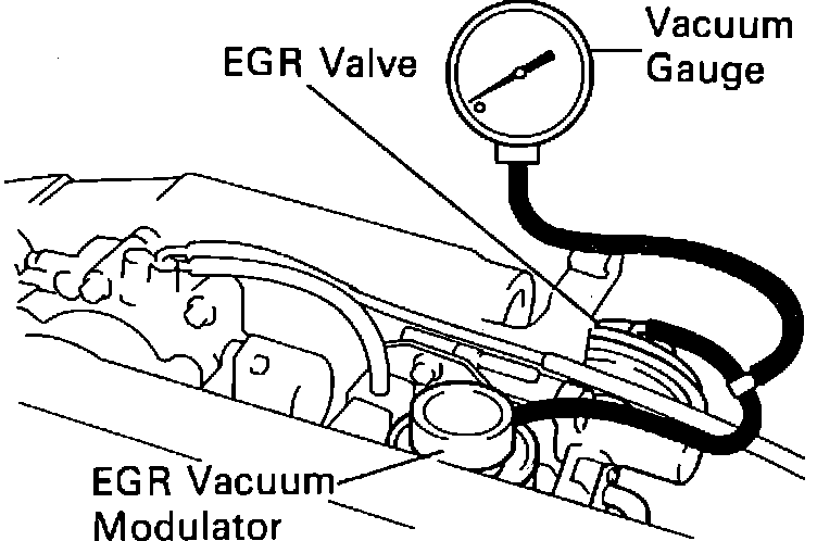 1. Using a three-way connector tee, connect a vacuum gauge in the line between the EGR valve and the EGR vacuum modulator. Fig. 37