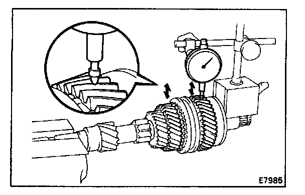 Using dial indicator, measure the oil clearance between the gear and shaft.