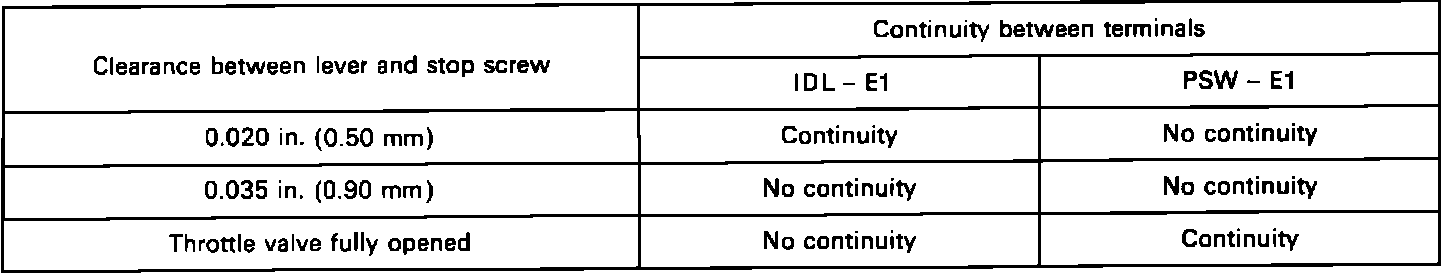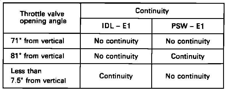 1. Disconnect the TPS connector.2. Using an Ohmmeter and refering to the TPS Resistance Chart, measure the resistance between the terminals.