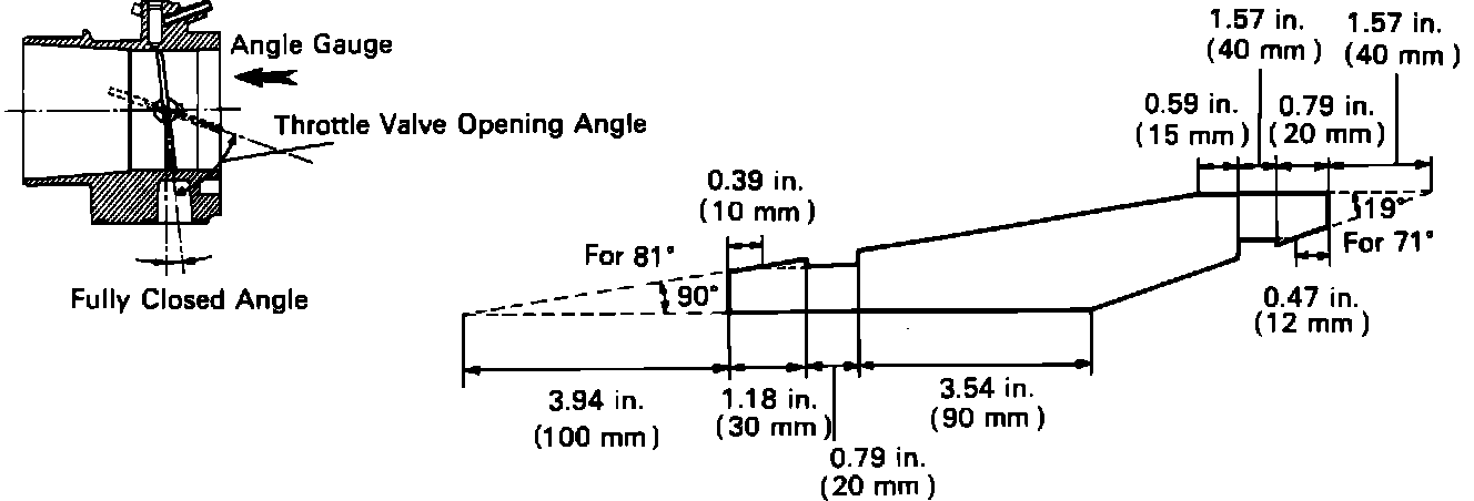 5. Set the throttle valve angle to 71° and then at 81° from the vertical position (including fully closed angle 6°).
