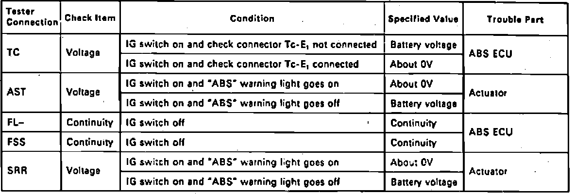 Fig. 78 Anti-lock Brake System Circuit Test (w/Computer Connector Connected) (Part 1 Of 2). MR2: