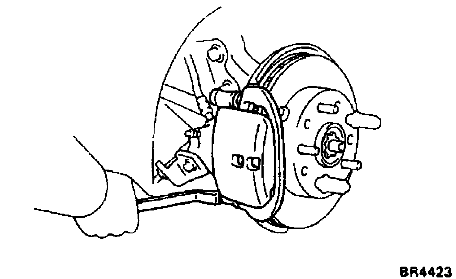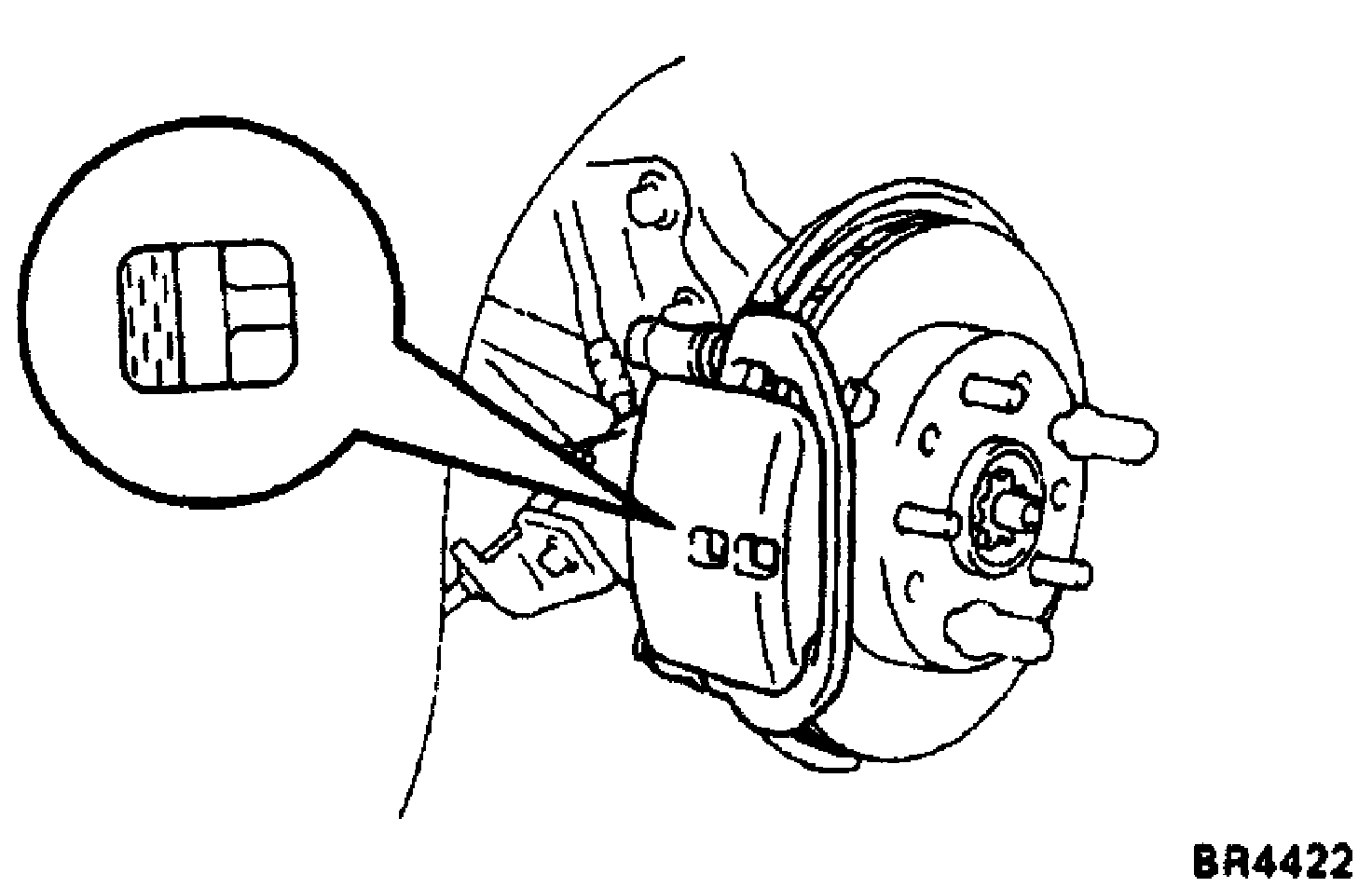 Check the pad thickness through the cylinder inspection hole and replace the pads if not within specification.
