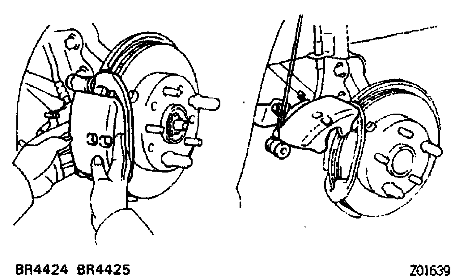 (a) Apply disc brake to both sides of the two inner anti-squeal shims.