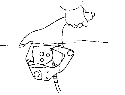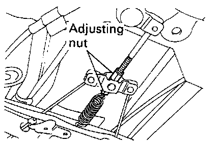 e. Stretch the brake cable by turning the adjusting nut before the parking brake crank begin moving.