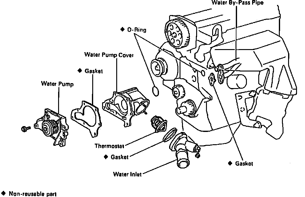 (d) Remove the gasket and two 0-rings from the water pump and water by-pass pipe.