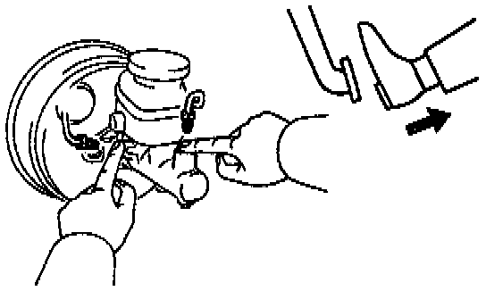 (b) Depress the Brake Pedal several times, then loosen the bleeder plug with the pedal held down.
