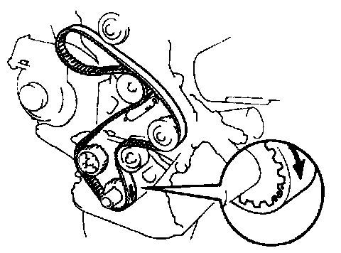 HINT (When re-using timing belt): Align the points marked during removal, and install the belt with the arrow pointing in the direction of engine revolution.