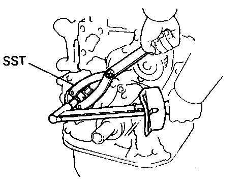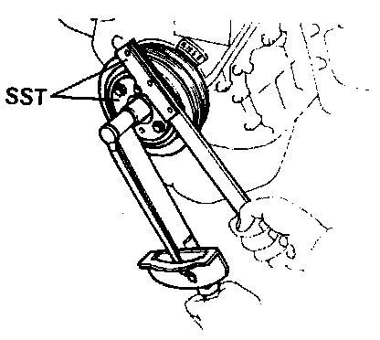 (b) Using SST. install the pulley nut.