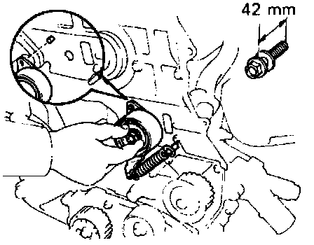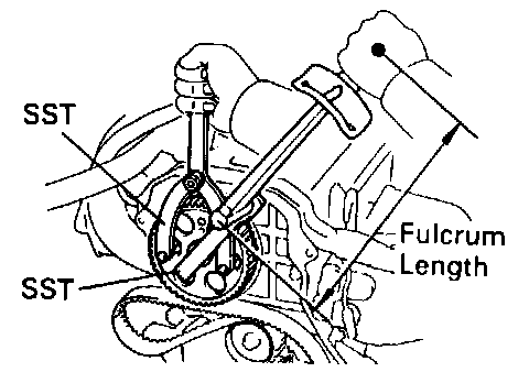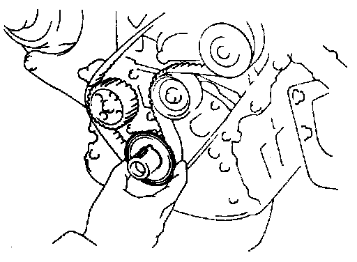 (b) Install the timing belt, and checking the tension between the crankshaft timing pulley and camshaft timing pulley.