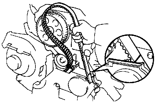 If the timing marks do not align, remove the timing belt and reinstall it.