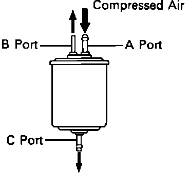 3. Using low pressure compressed air, blow into inlet pipe from fuel tank (A port) and check that air flows through other pipes without resistance.
