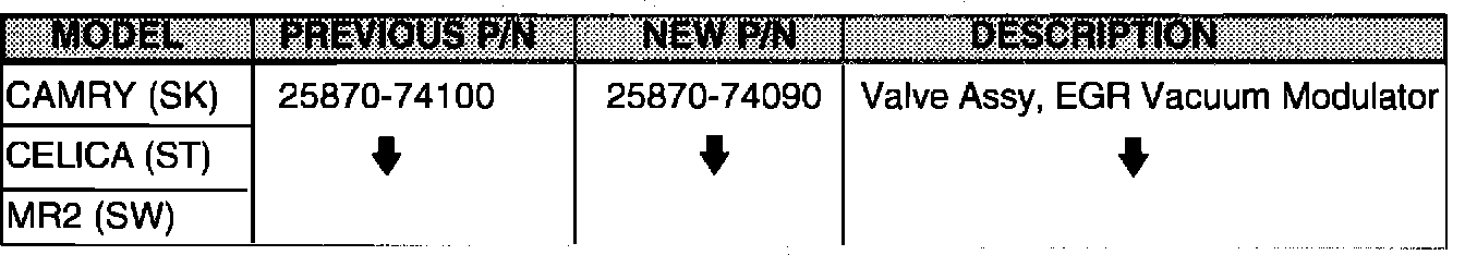 The EGR Vacuum Modulator has been changed to enhance preformance during light acceleration at speeds between 45-60 mph on the automatic transmission equipped models: