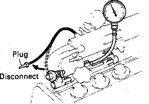 10. Reconnect the vacuum hose and check that fuel pressure reading returns to pressure noted in step 6.