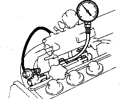 6. Start the engine and observe the fuel pressure gauge readings at idle.