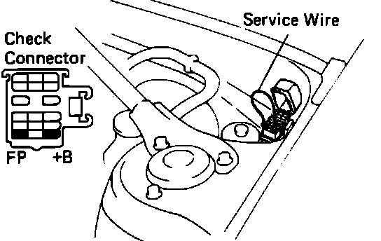 3. Using a service wire, short terminals +B and FP on the engine check connector. The fuel pump should operate.