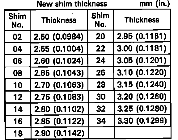 Fig. 2 Intake Valve Shim Size Chart: