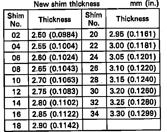 Fig. 3 Exhaust Valve Shim Size Chart: