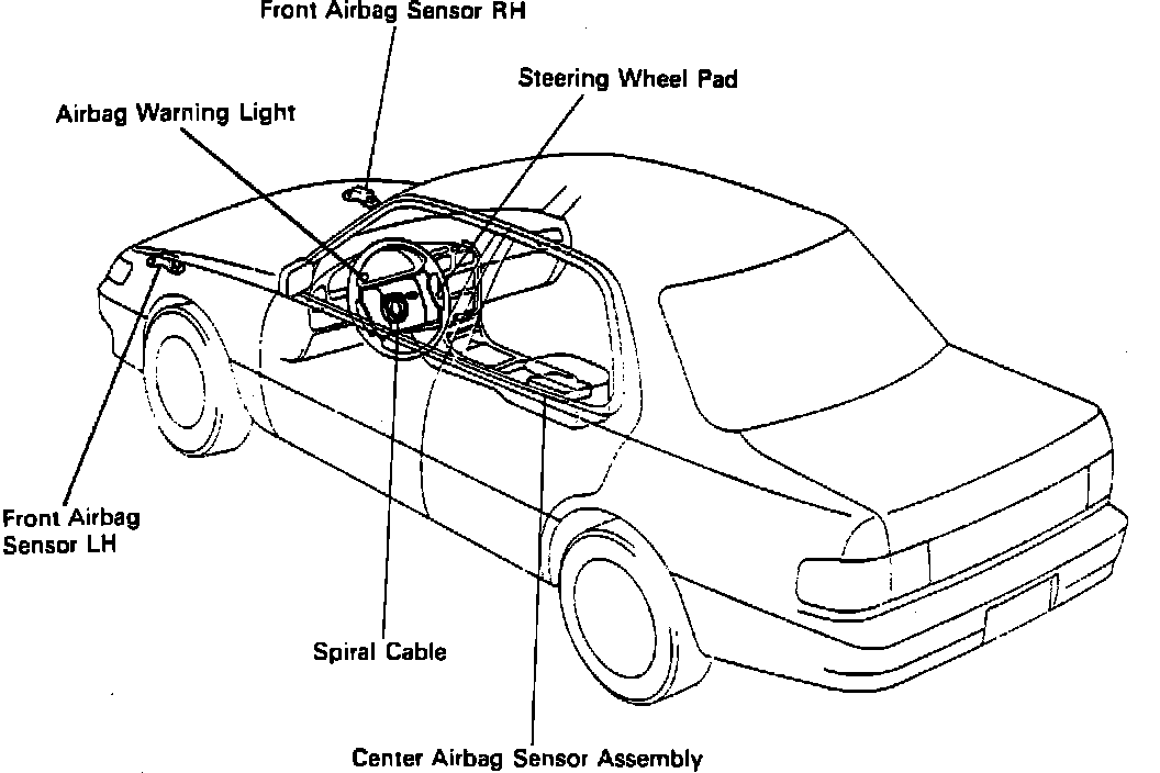 Fig. 2 SRS Component Locations. Celica & Supra: