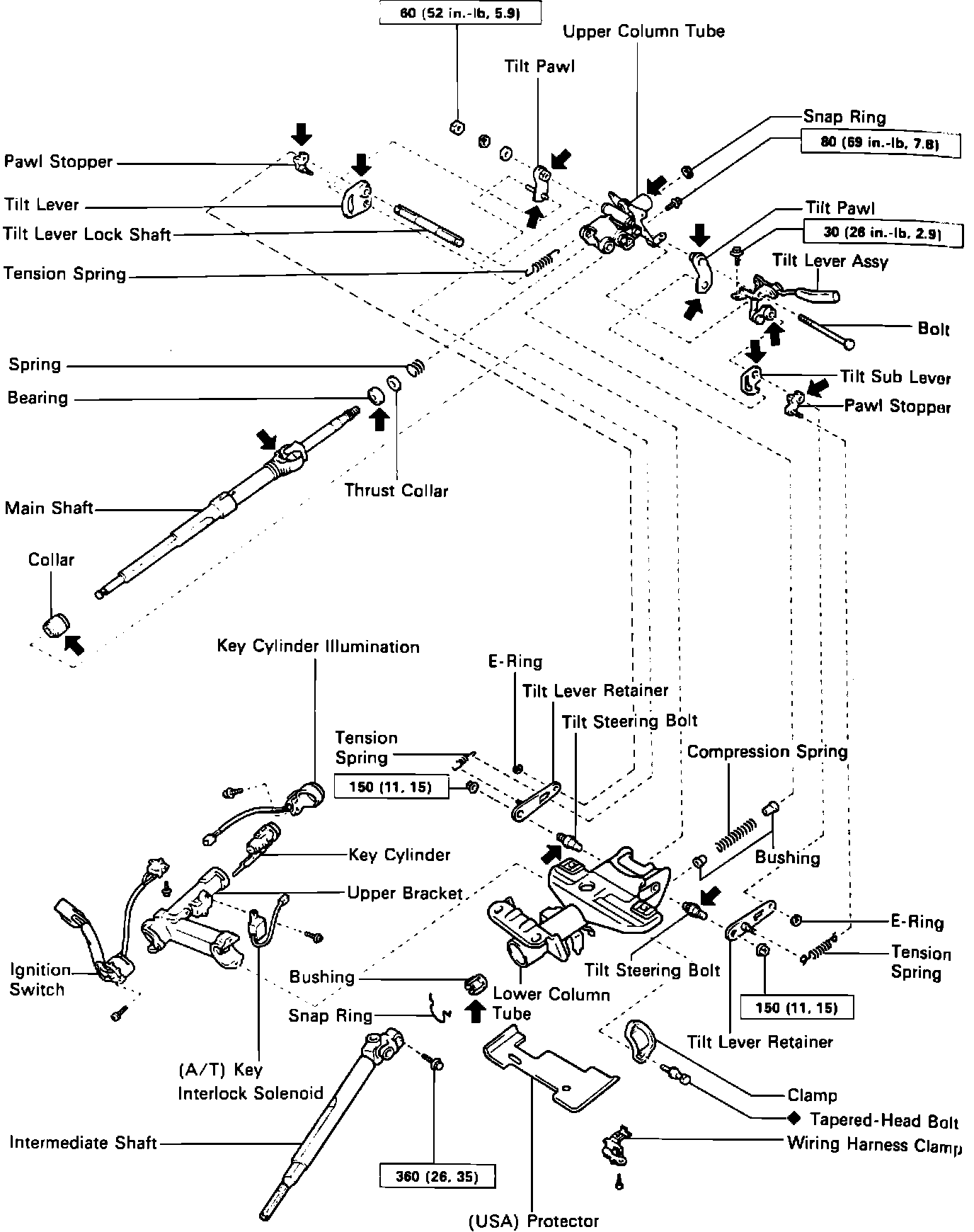 Fig. 21 Exploded View Of Steering Column. 1991-93 MR2: