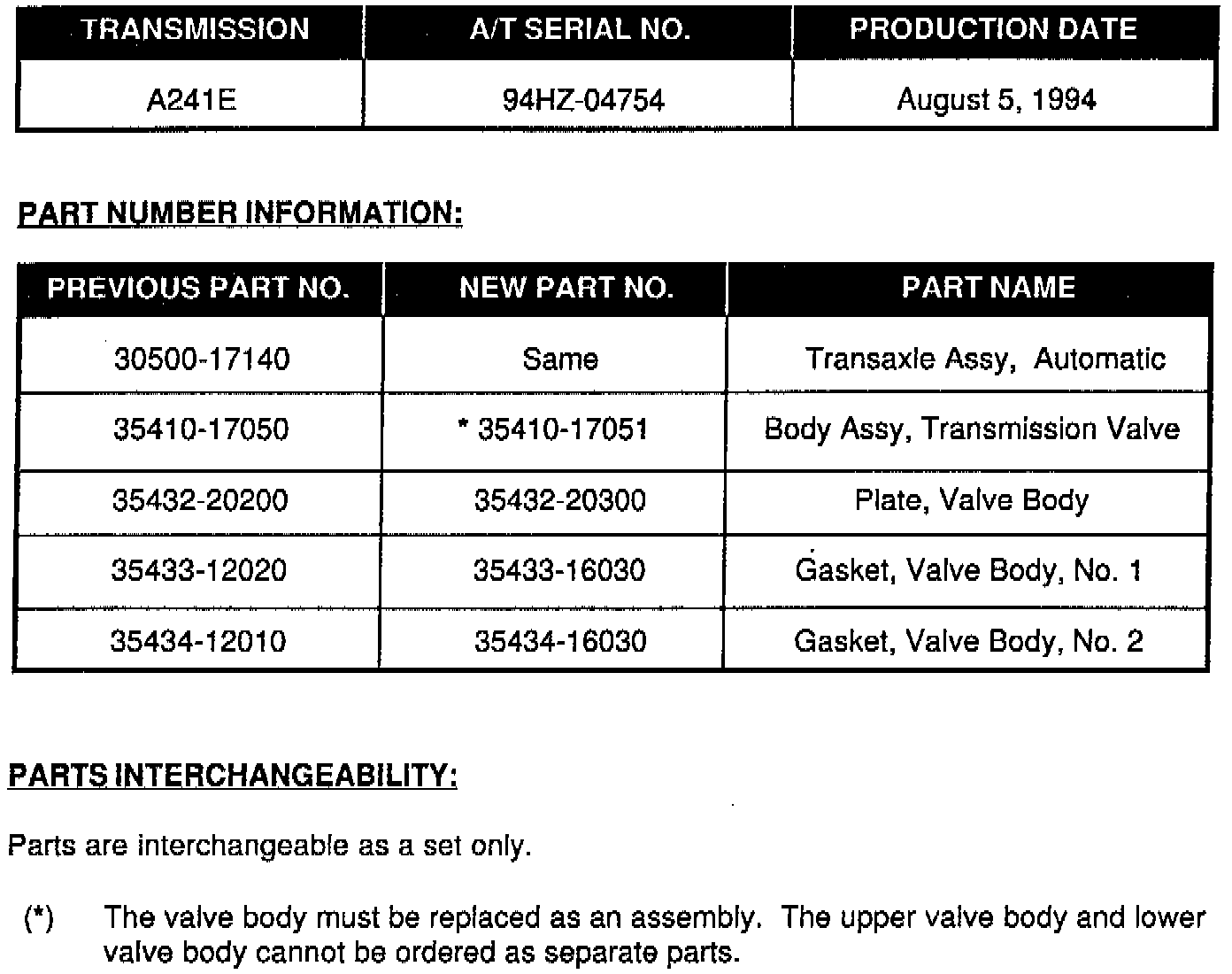 A241E AUTOMATIC TRANSAXLE VALVE BODY