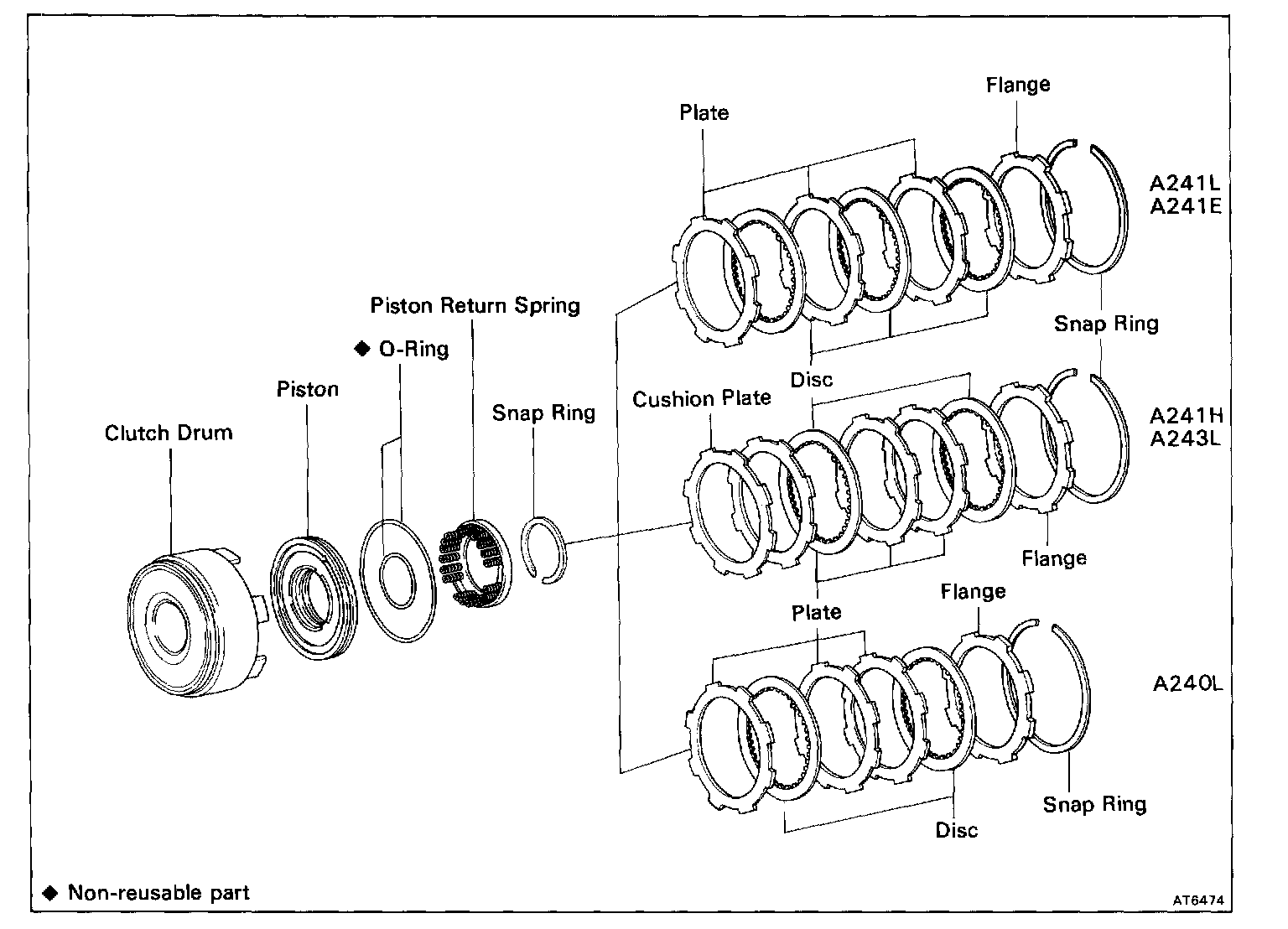 Check that the sliding surface of disc, plate and flange worn or burnt. If necessary, replace them.