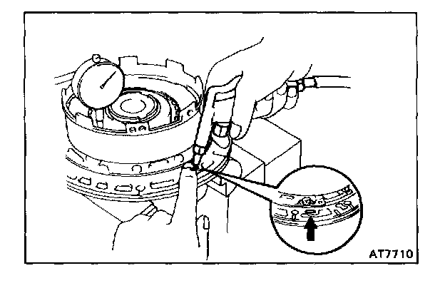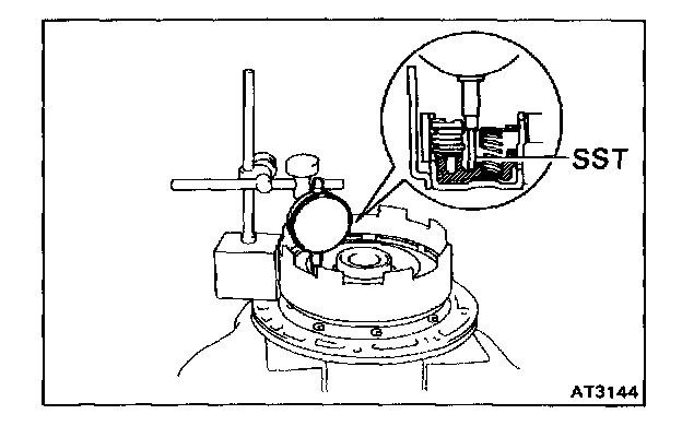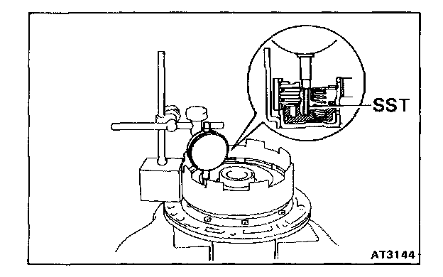 Using a dial indicator, measure the inside diameter of the direct clutch bushing.